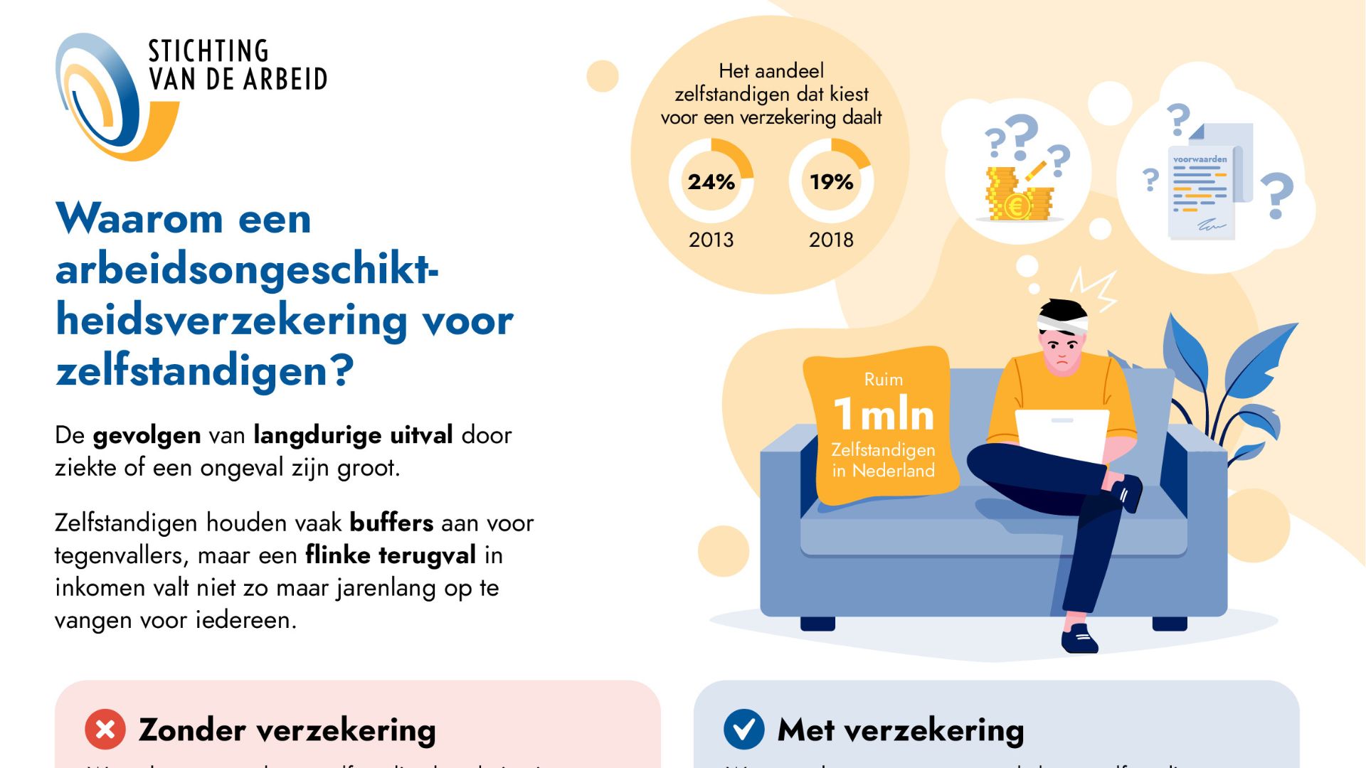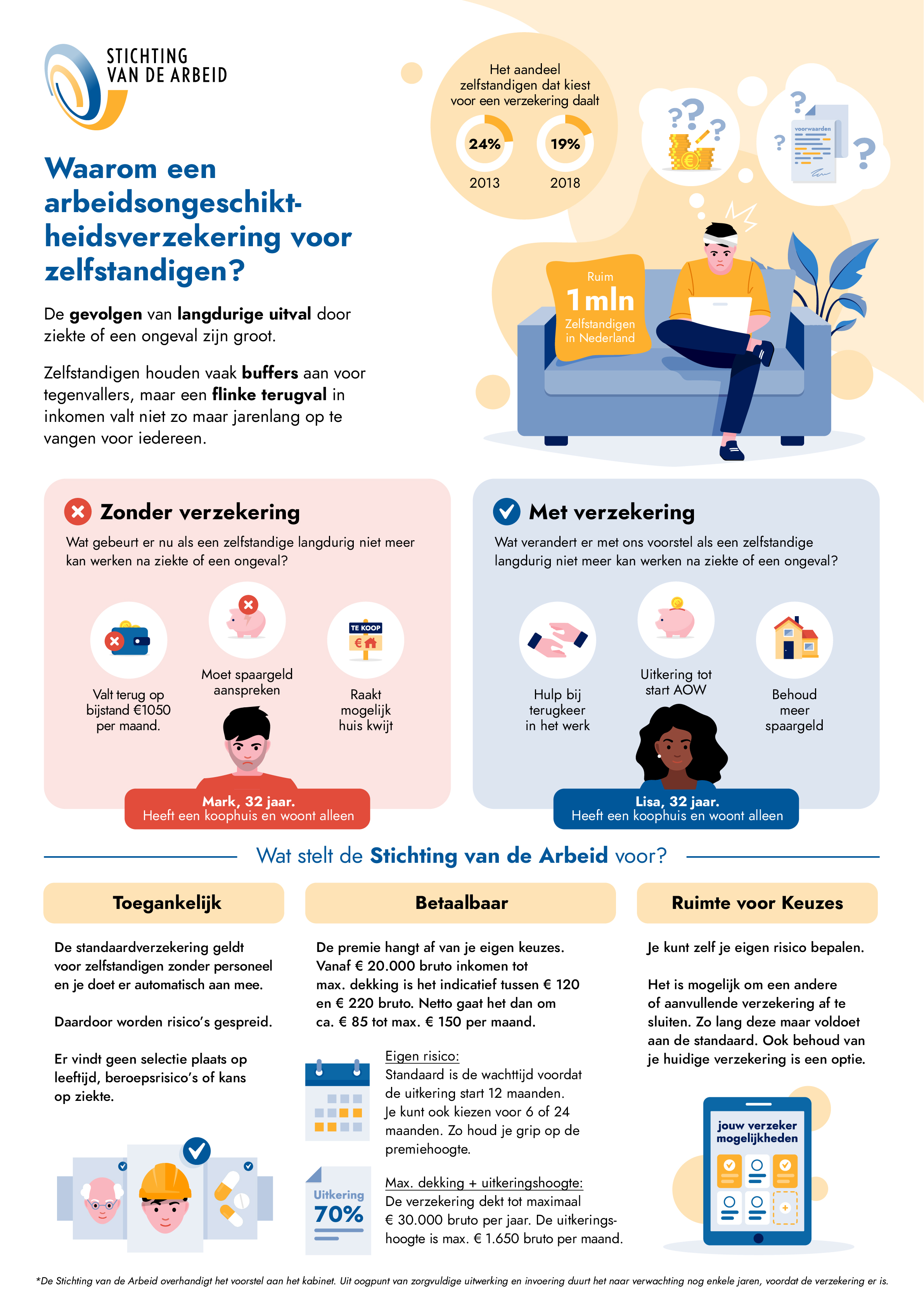 De Stichting van de Arbeid, de Vereniging Zelfstandigen Nederland en het Verbond van Verzekeraars doen een klemmend beroep op de Eerste en Tweede Kamer om het wetsvoorstel spoedig en integraal te behandelen om te voorkomen dat er een lange periode van onzekerheid ontstaat voor zelfstandigen. Het draagvlak voor de invoering van deze wet is gedurende al deze jaren breed en stabiel gebleven onder de betrokken partijen. Er is behoefte aan een duidelijk en vaststaand tijdspad richting implementatie. Vandaag is hierover een brief aan de Kamers gestuurd.